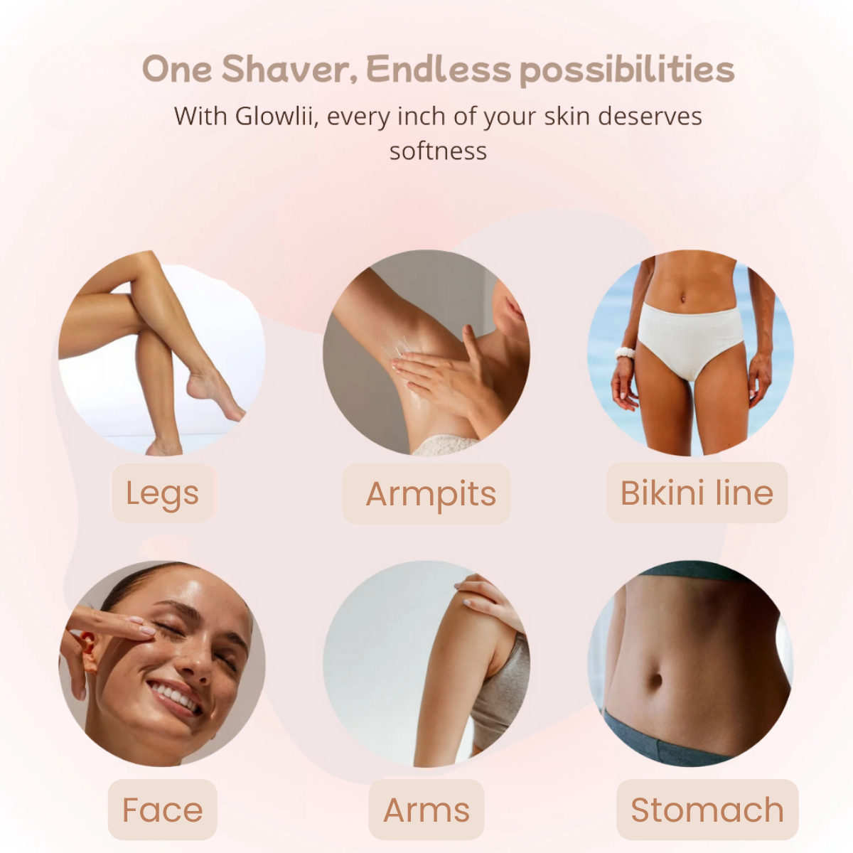 Absolutely! While designed for the intimate area, the Glowlii razor is also perfect for legs, underarms, arms, stomach, face, bikini line, and buttocks.